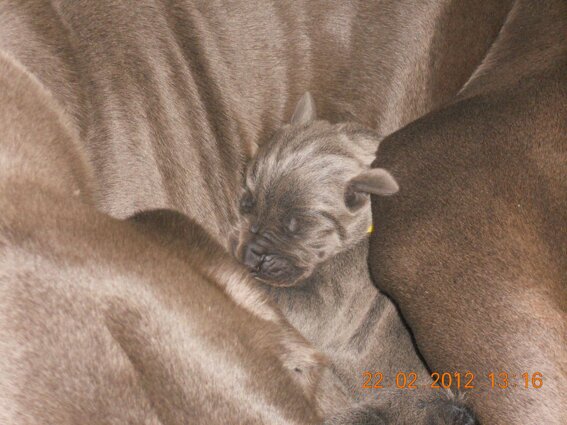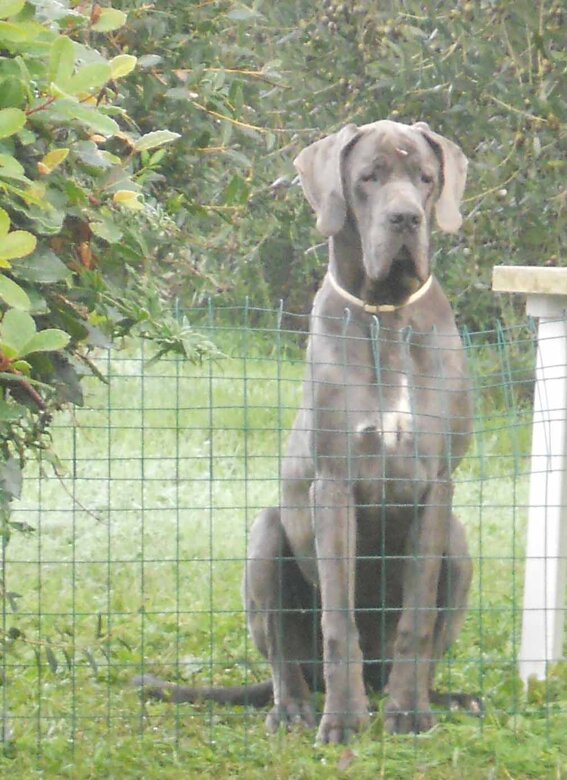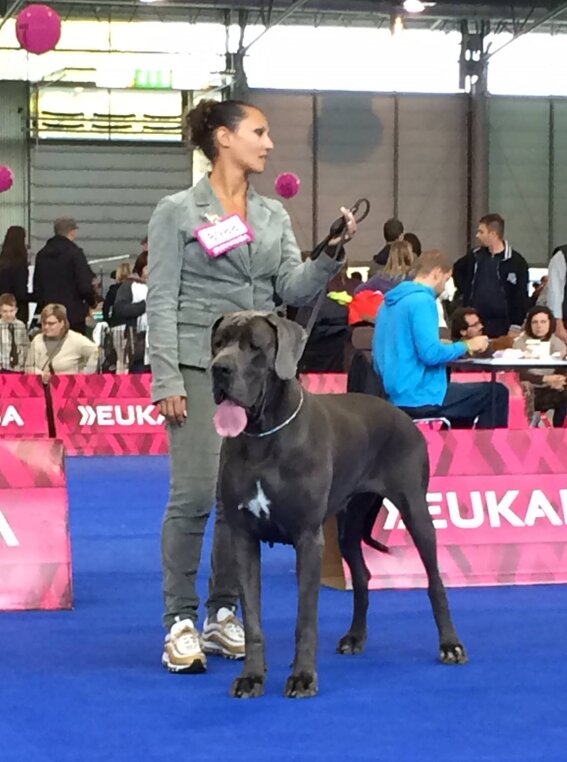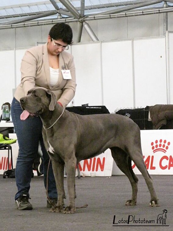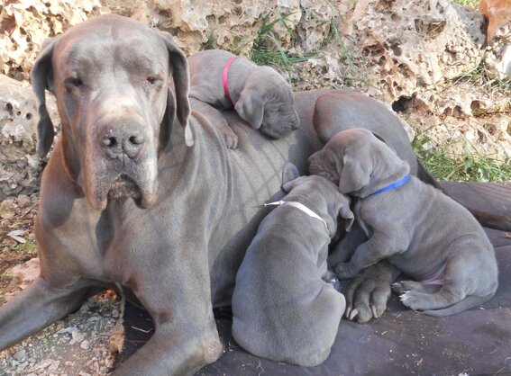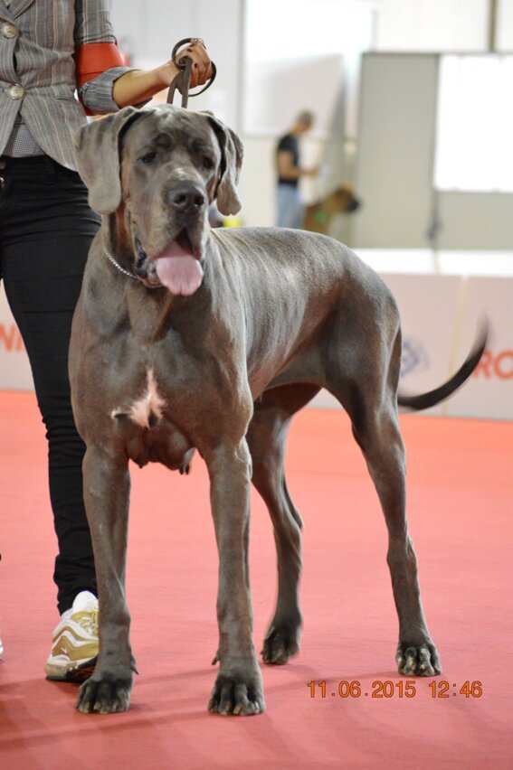Femmina blu nata il 19 febbraio 2012 da Ch. Bonten (della Luce Tranquilla) e Jr. Ch. Libora Great Danes Erotica