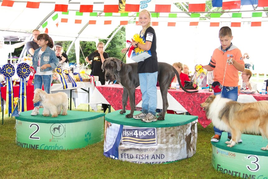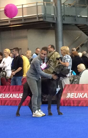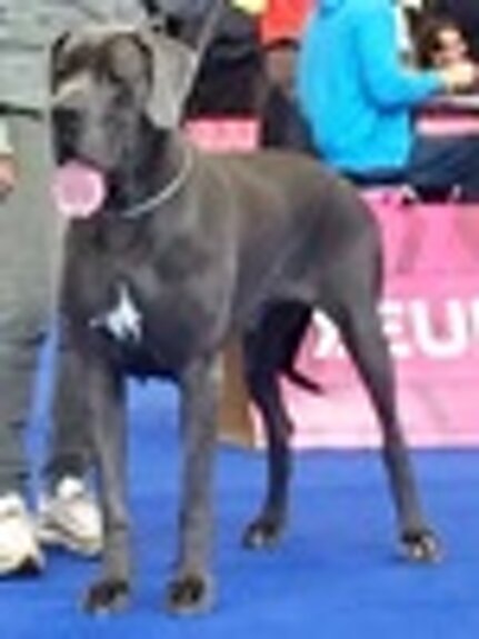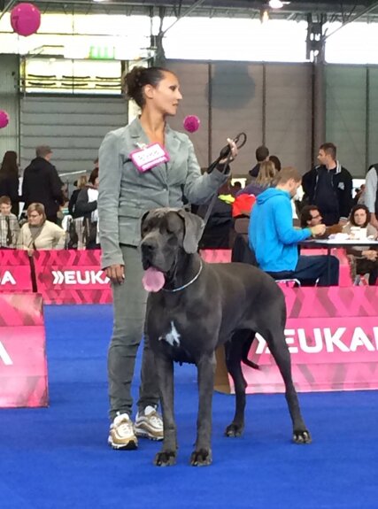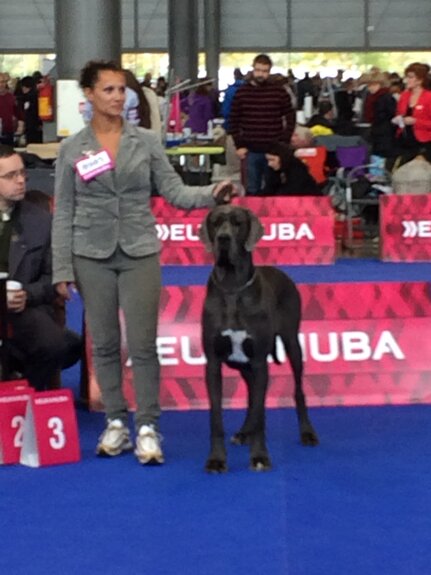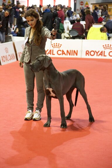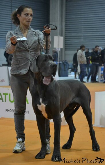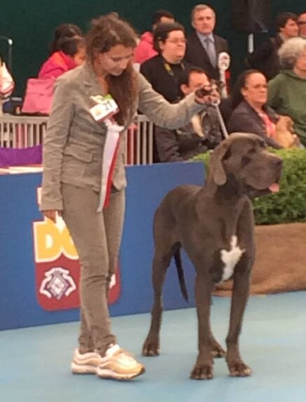 PERICLE DELLA LUCE TRANQUILLA: 1° Ecc Cac Cacib + BOB + 2° Miglior Alano di tutti i colori (su 120 soggetti iscritti) + 5° al BOG, classe intermedia maschi blu